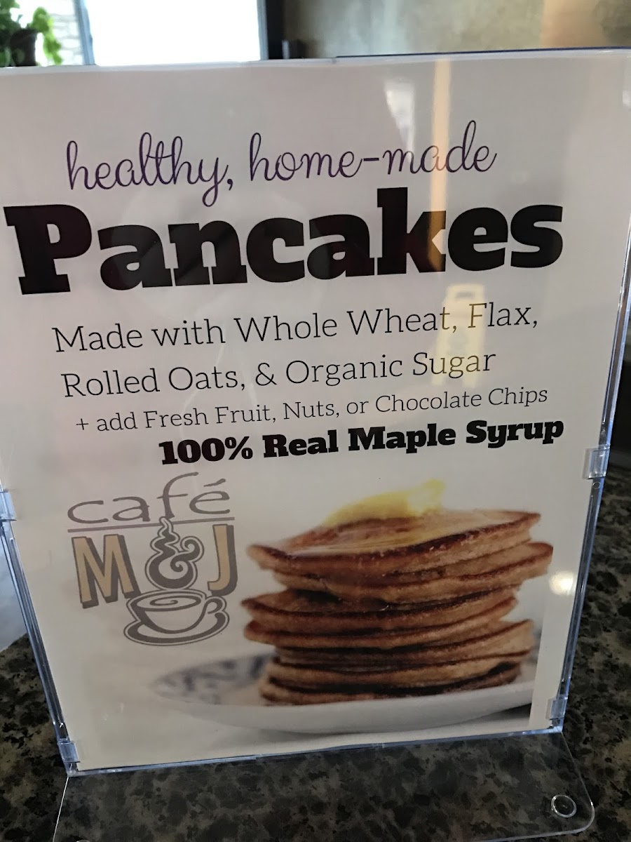Made from scratch vegan pancakes, served with real maple syrup