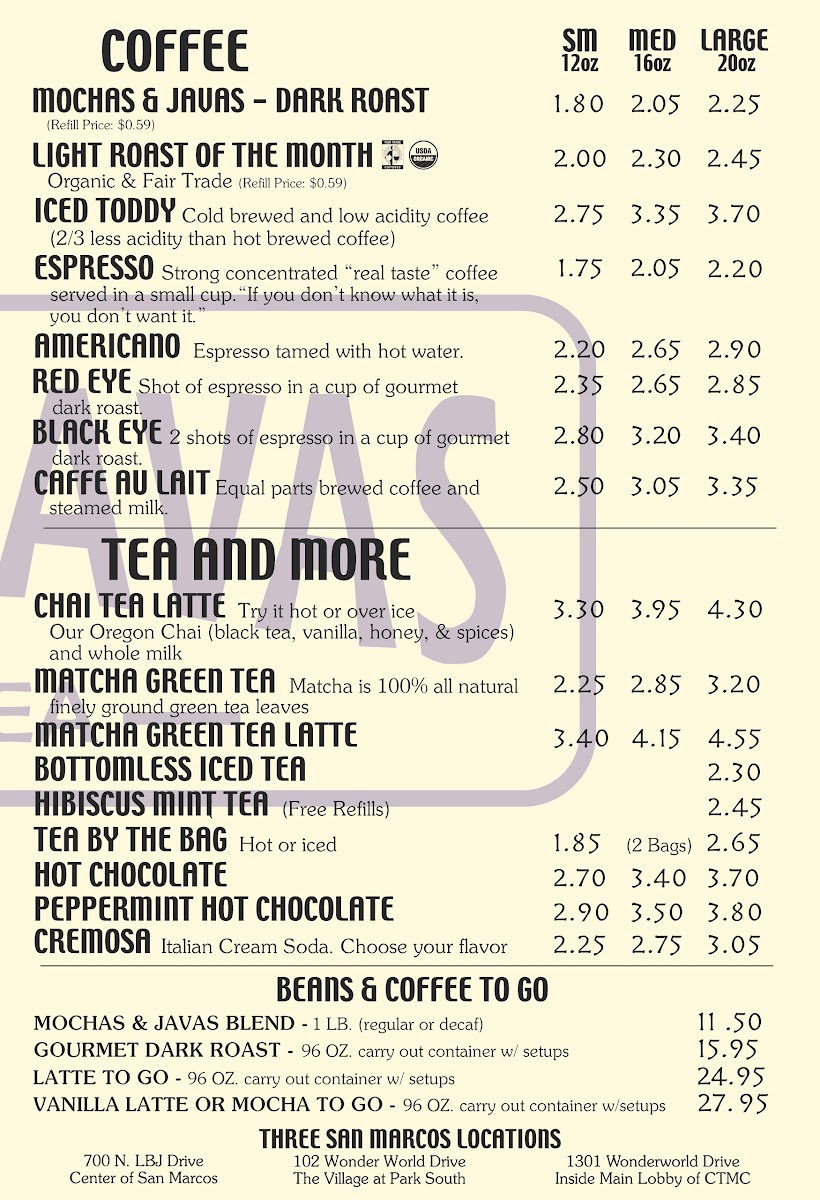 Welcome to Mochas & Javas, your cozy haven in San Marcos, TX, where delectable flavors meet a warm atmosphere. Nestled conveniently near the university, it's the perfect spot for students and locals alike.