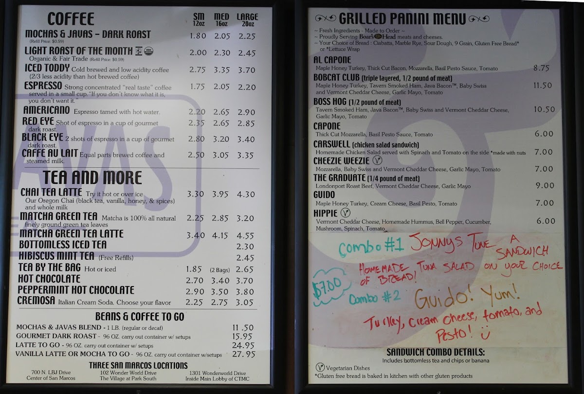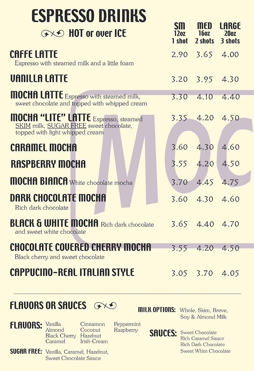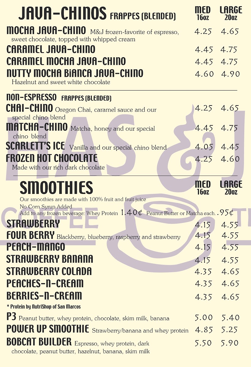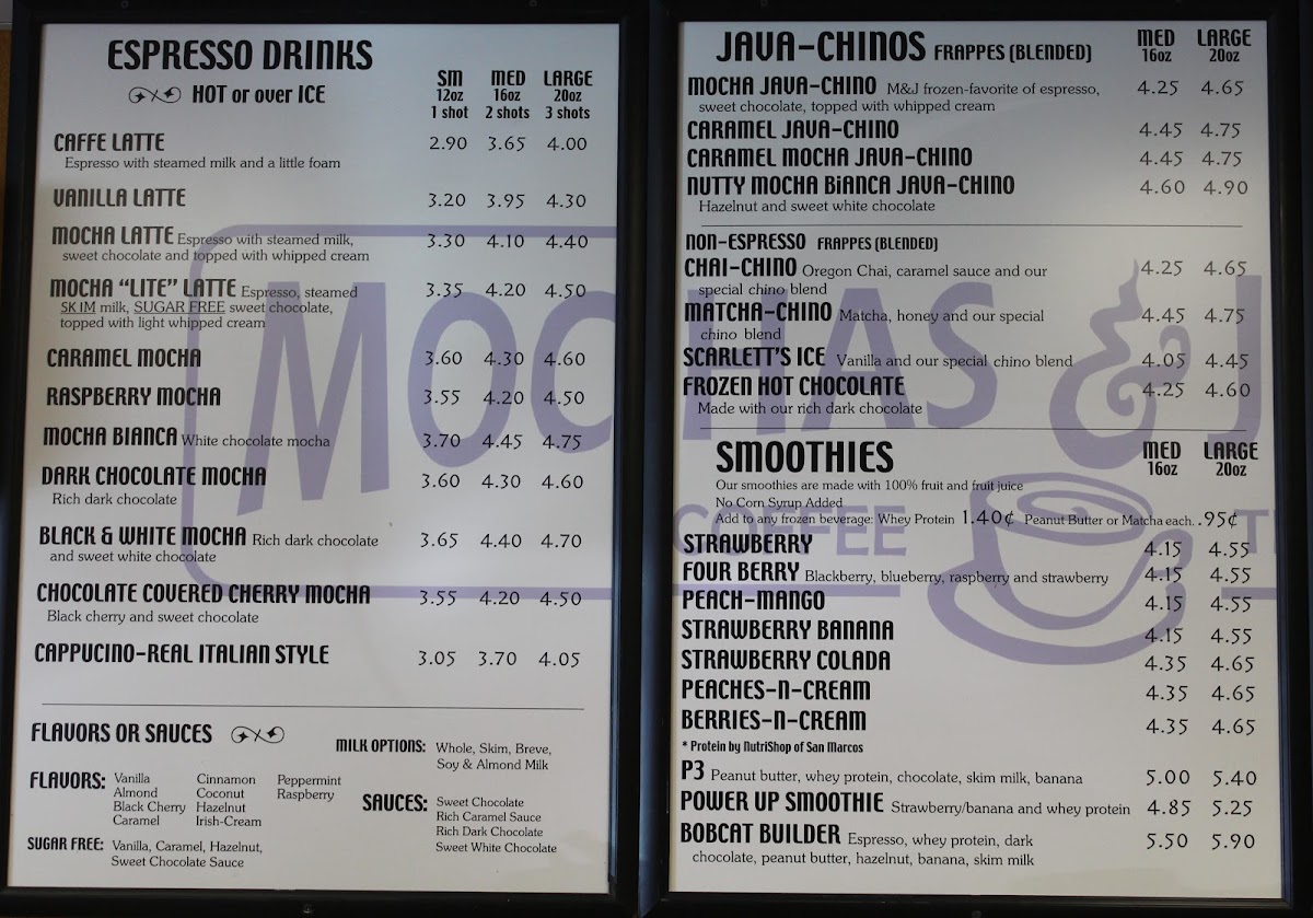 Mochas & Javas Menu (2025 Update)